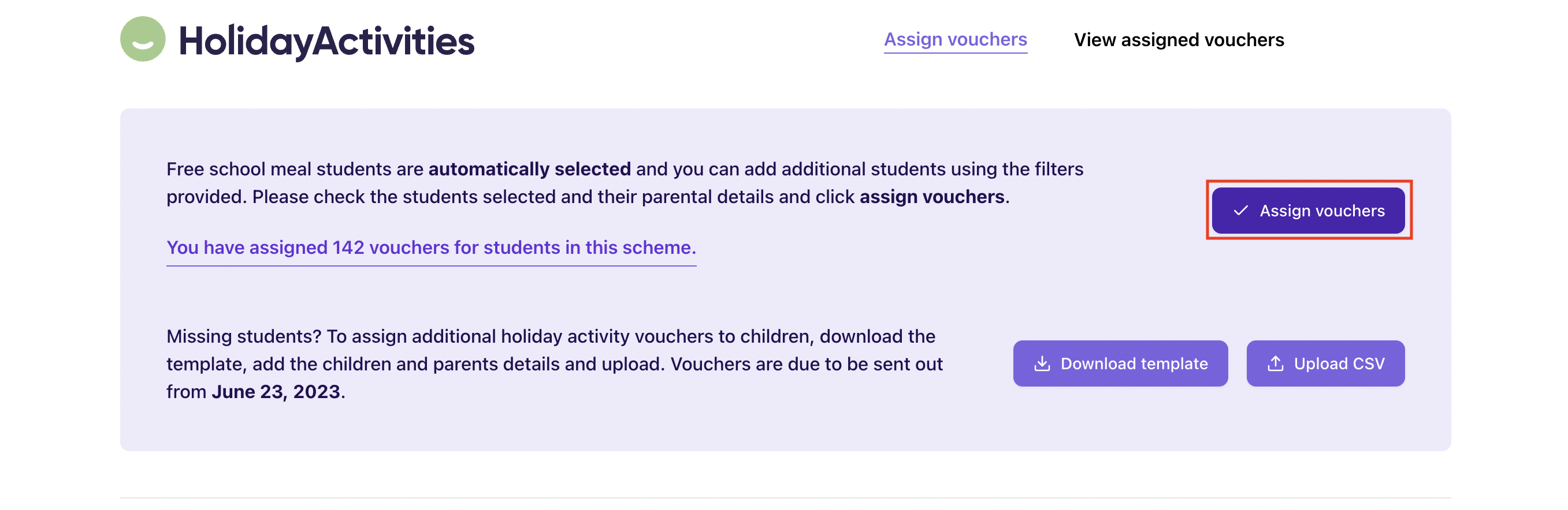 Click Assign vouchers, this will send the voucher to the parent you have changed the voucher to be sent to.