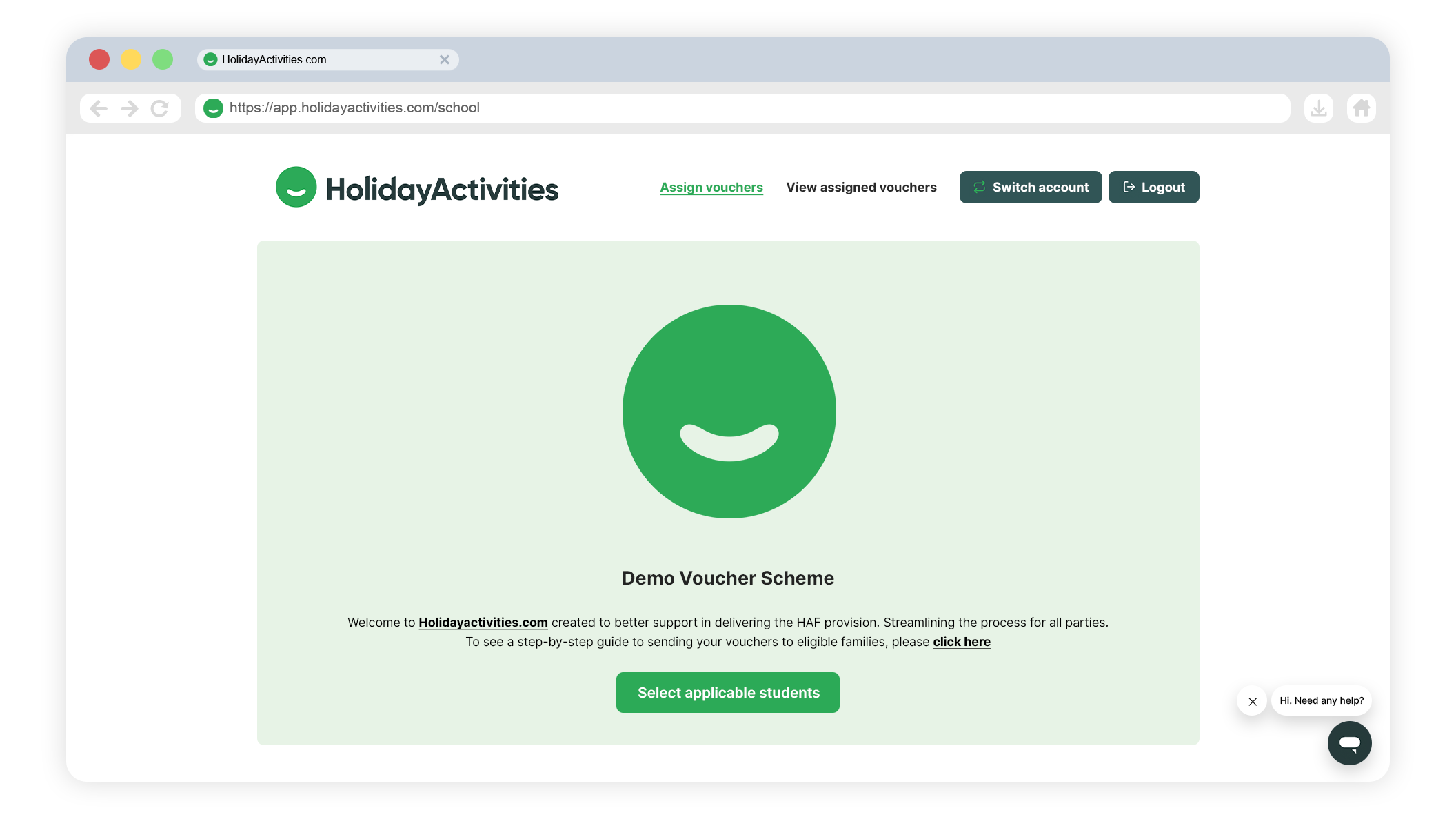 You'll then be taken into your HolidayActivities account where the HAF scheme will show, please click Select applicable students.