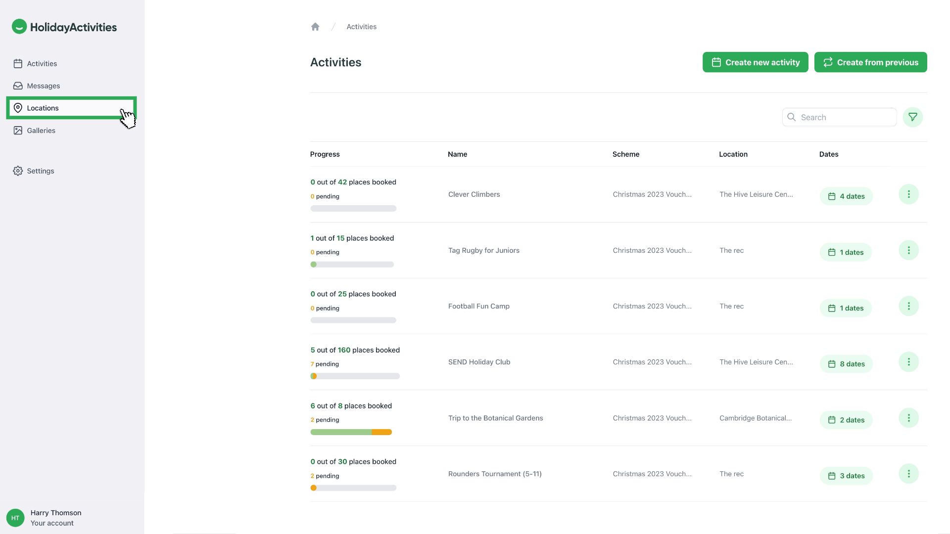 The first thing to do before creating any activities is to navigate to your Location tab.