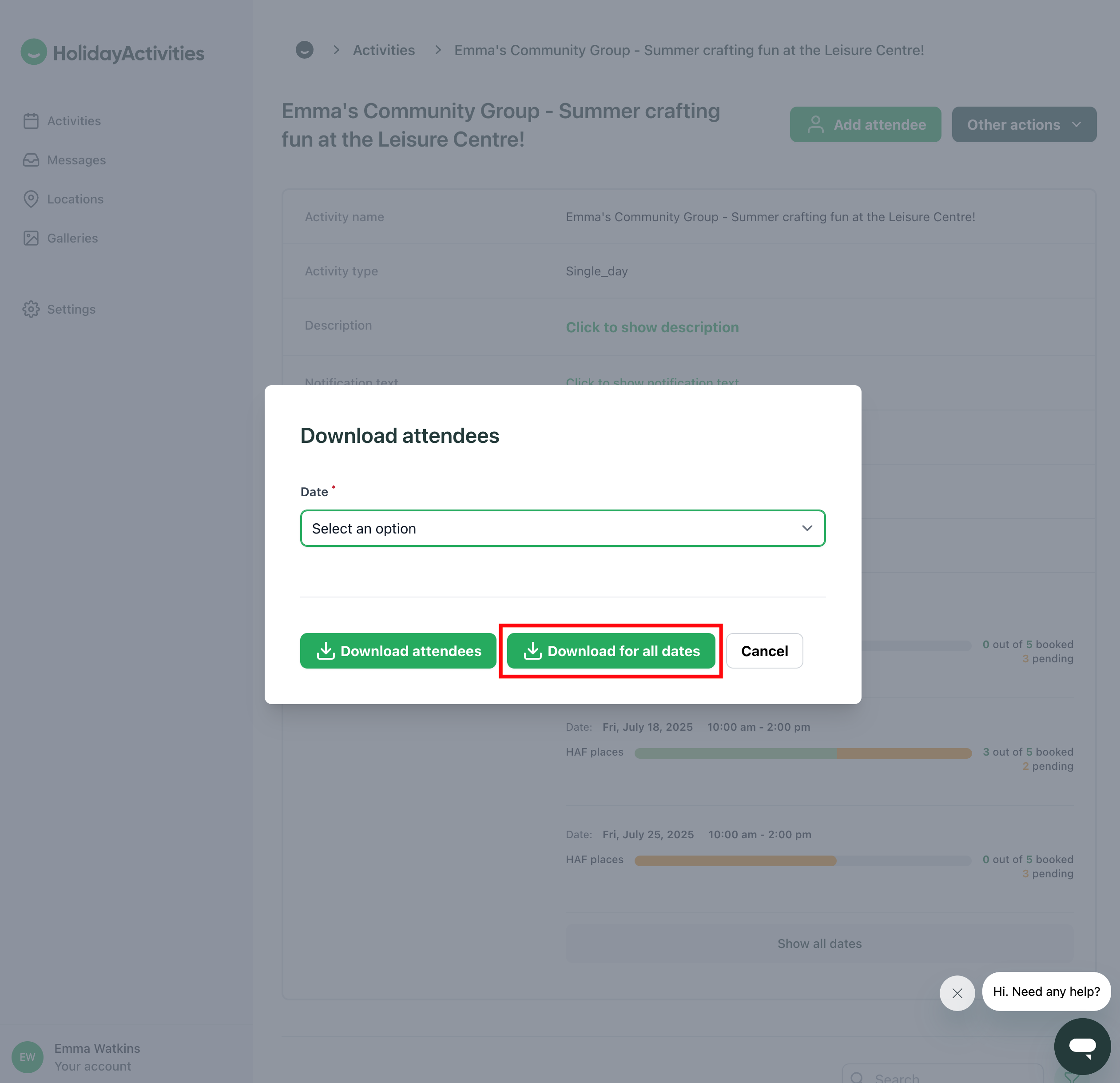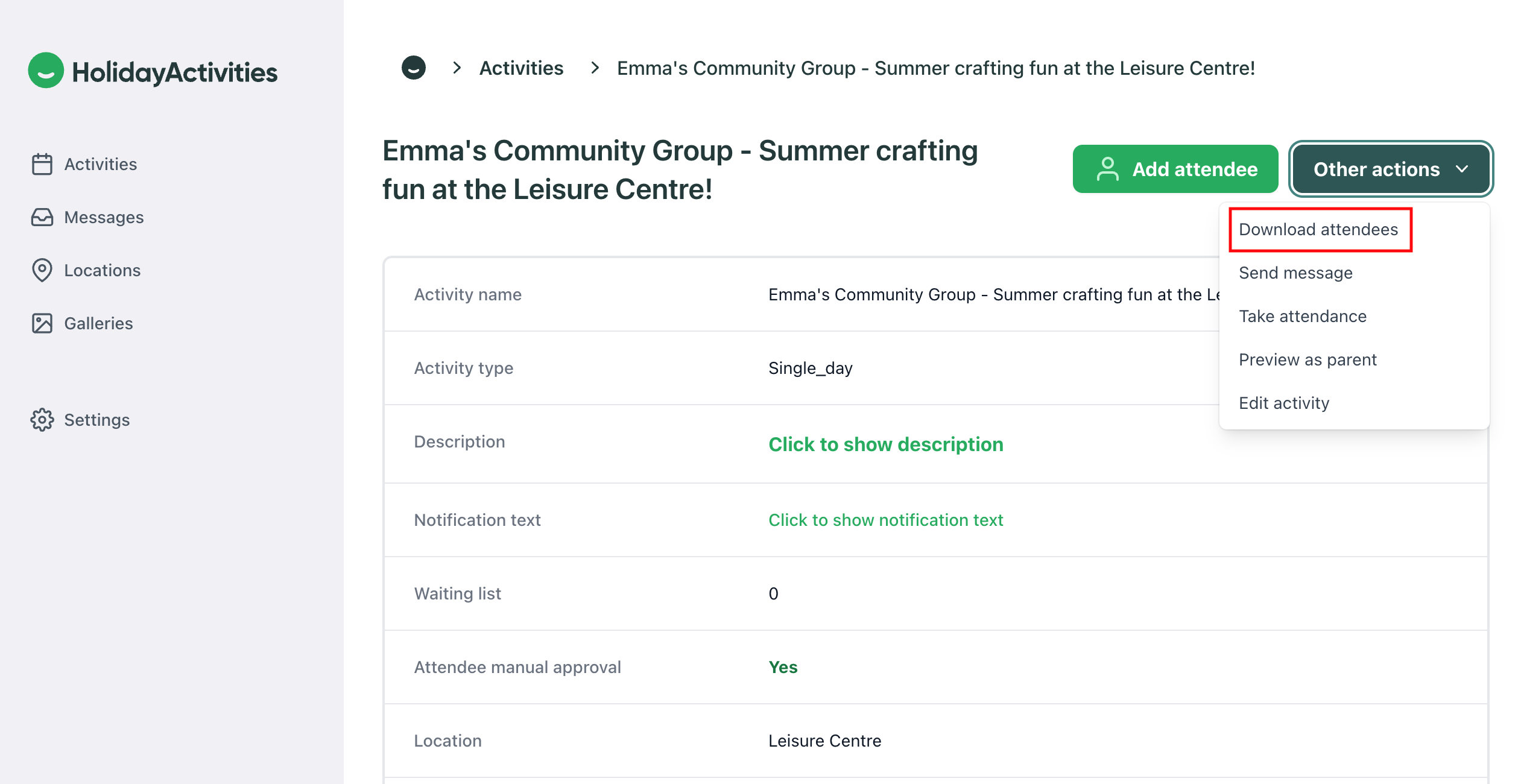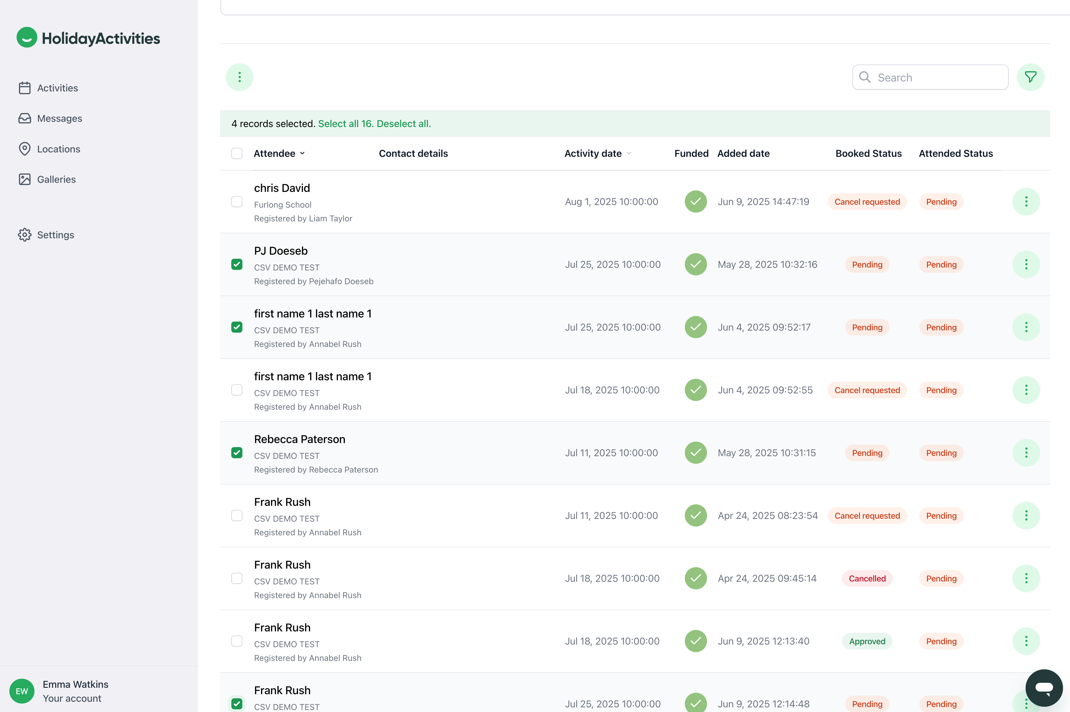 Go back to HolidayActivities and tick the pupils that are displayed in the Excel file.