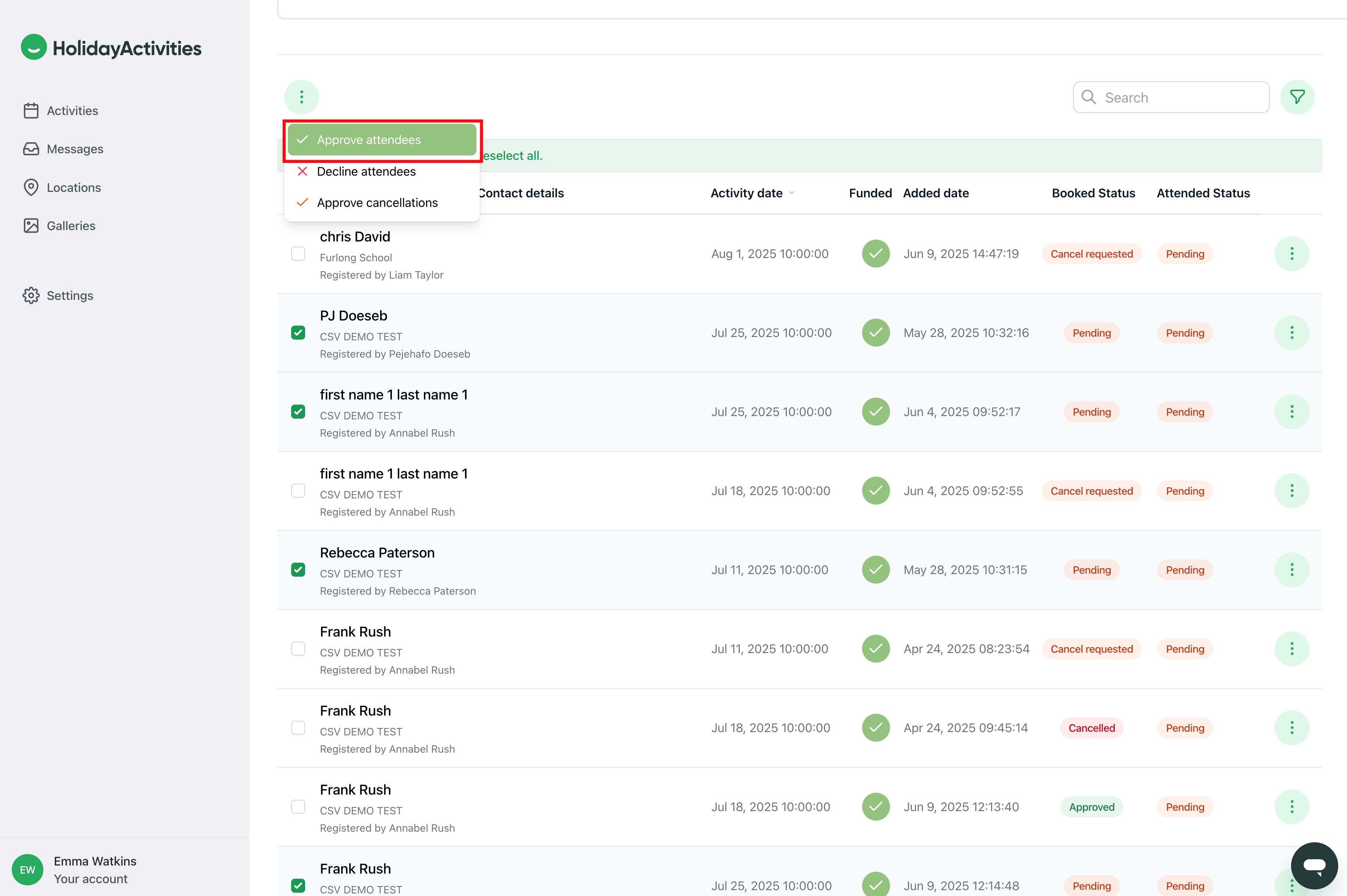 Your Local Authority may recommend filtering pending attendees to quickly approve those without additional needs.
