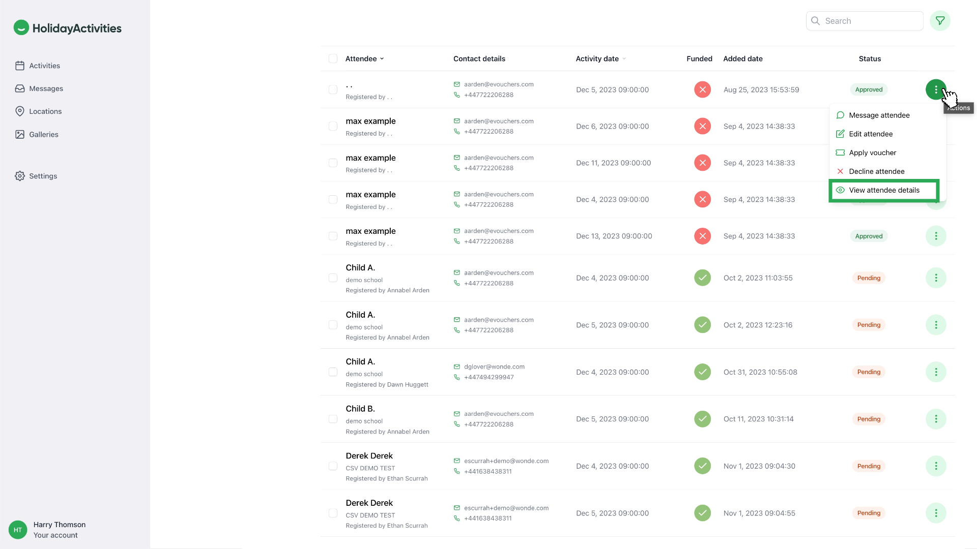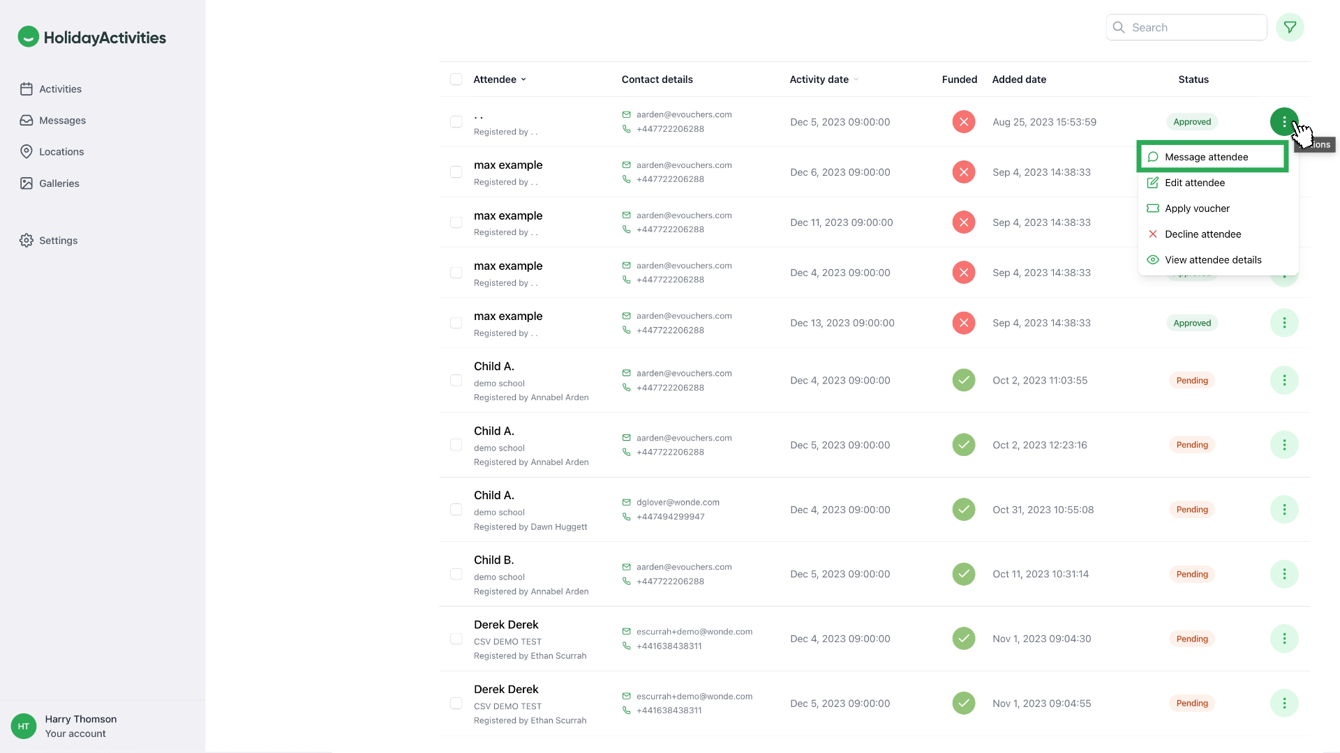 If you feel there is information missing that you require, go back to your attendee list. You can then locate the student and click on the three dots before selecting Message attendee. Here, you can send a message to the parent of the recipient to request the information you require.