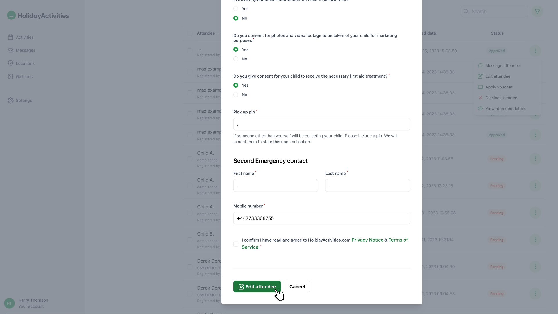Once you have received a response from the parent, click on the three dots and select Edit attendee.
