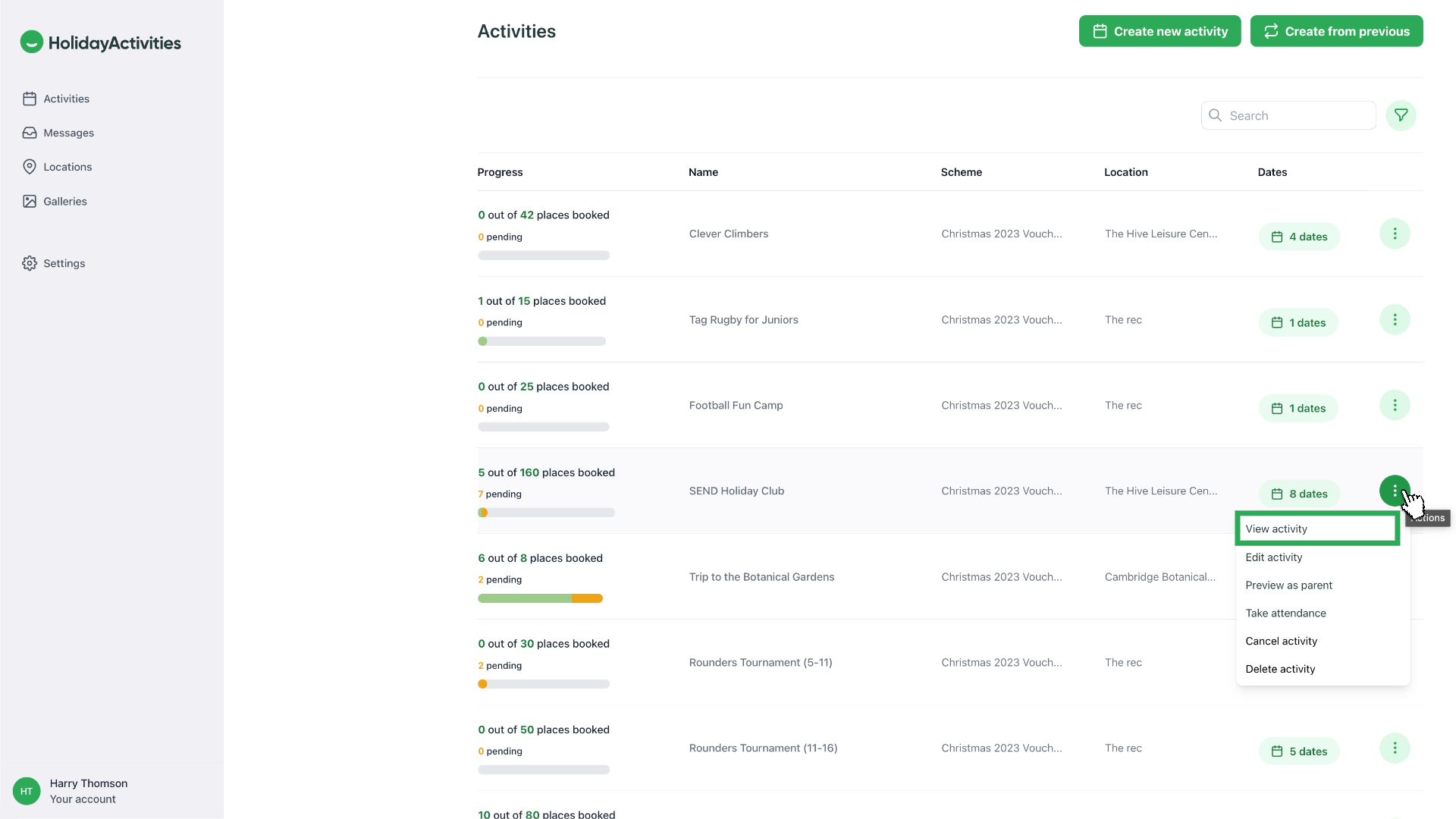 Find the activity you wish to view the attendees for then click on three dots and select View activity.