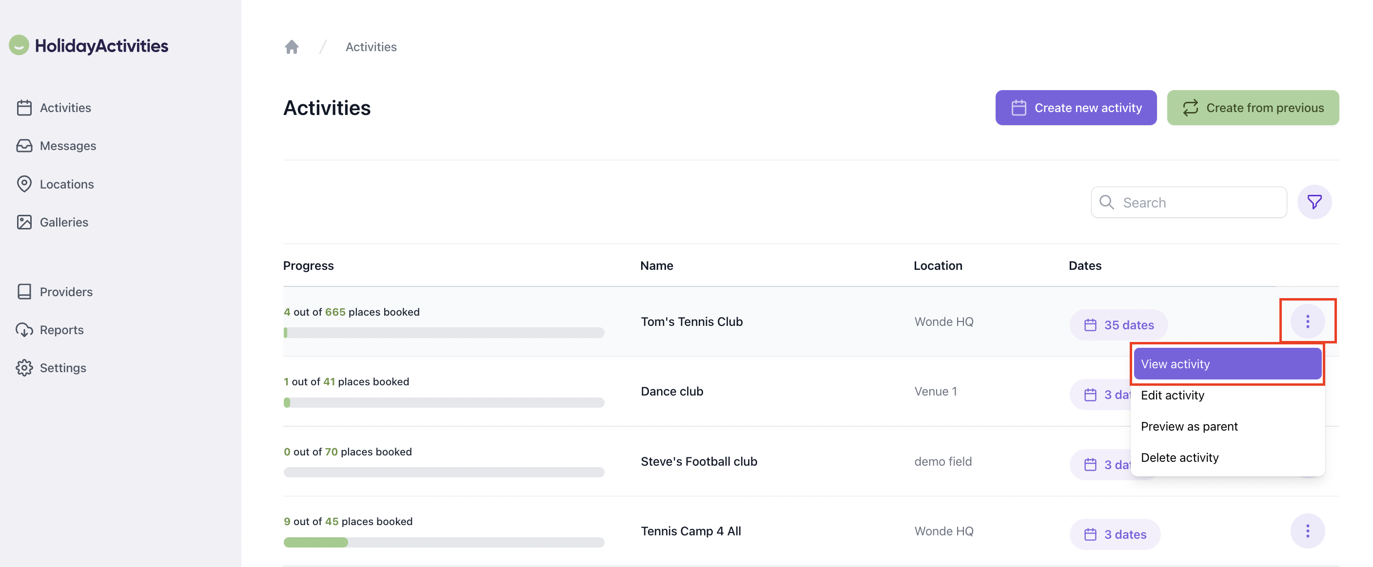Select the three dots on the right hand side of the activity you wish to manually add an attendee to and then, View activity.