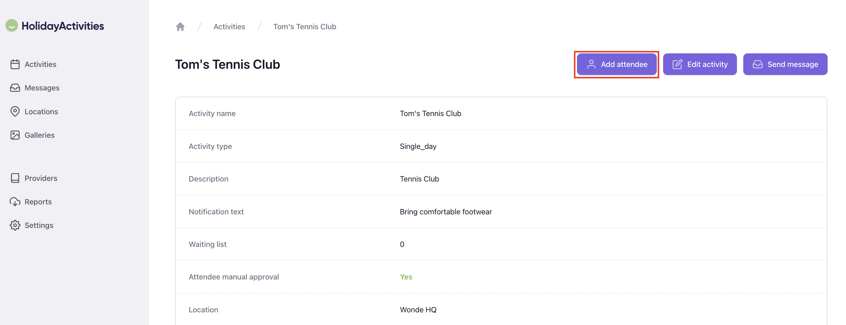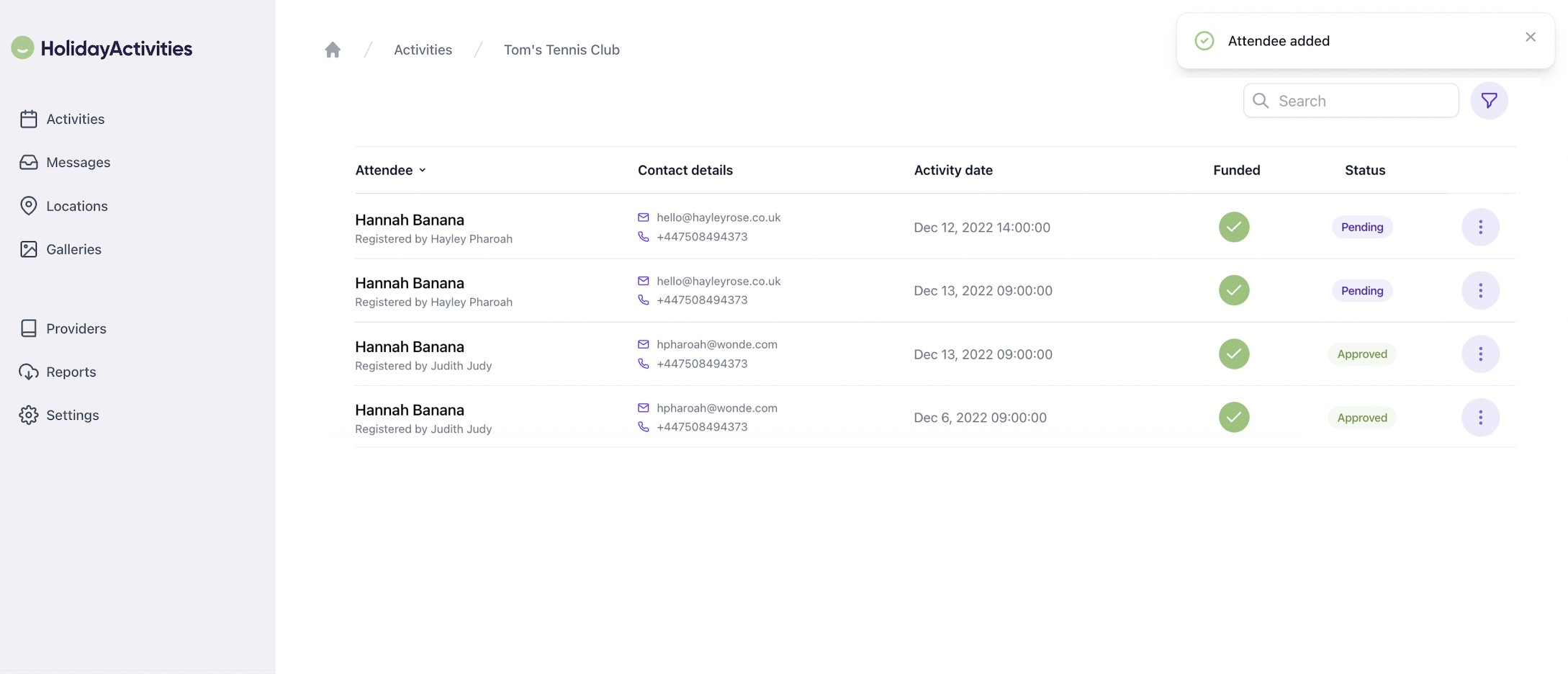 The attendee has now been added to the chosen dates. You will find them listed on your attendees.