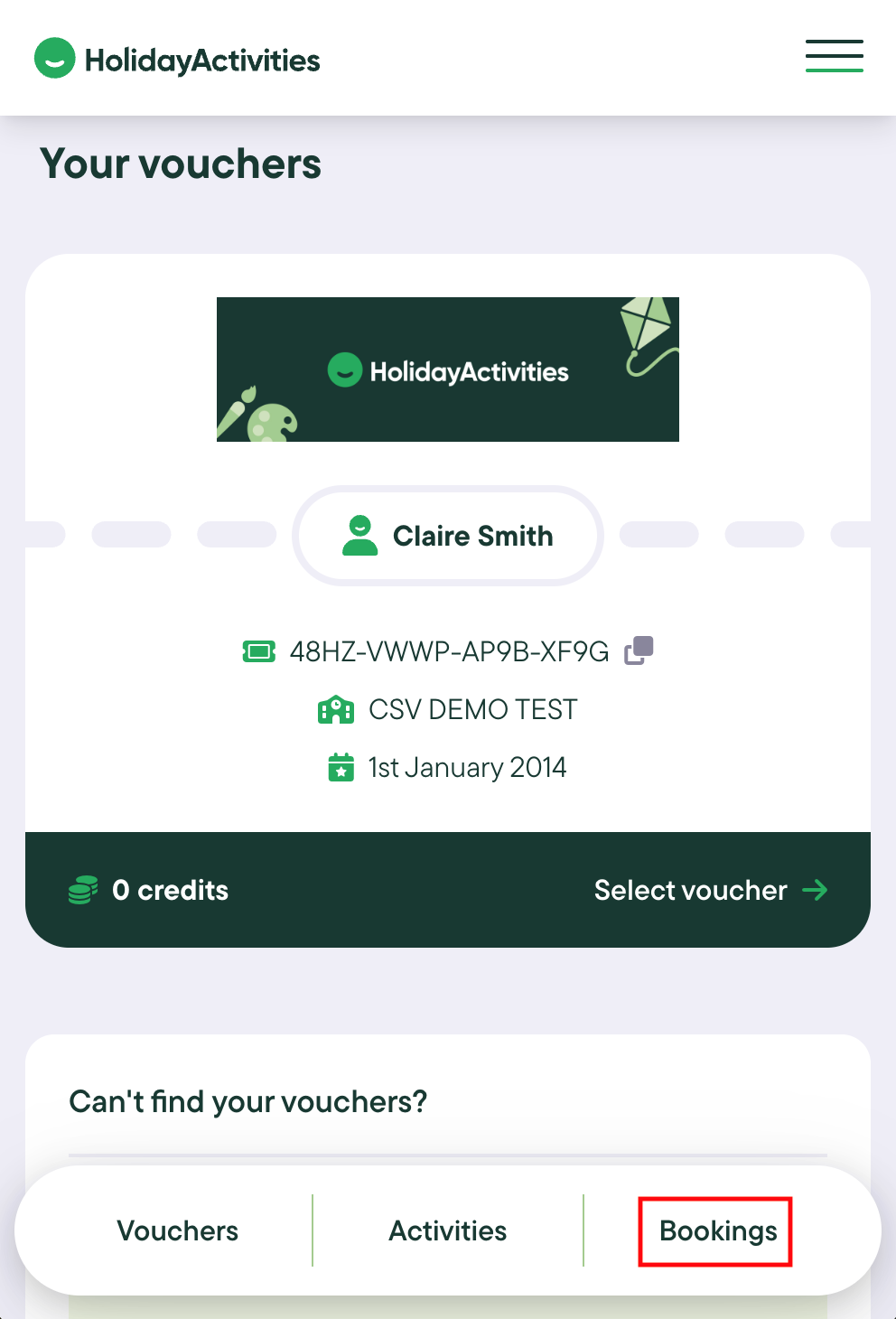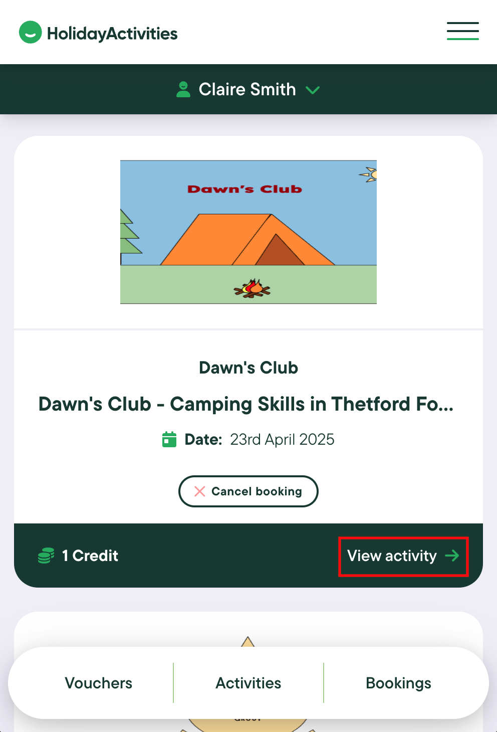 Log into your account via app.holidayactivities.com and go to your Bookings.