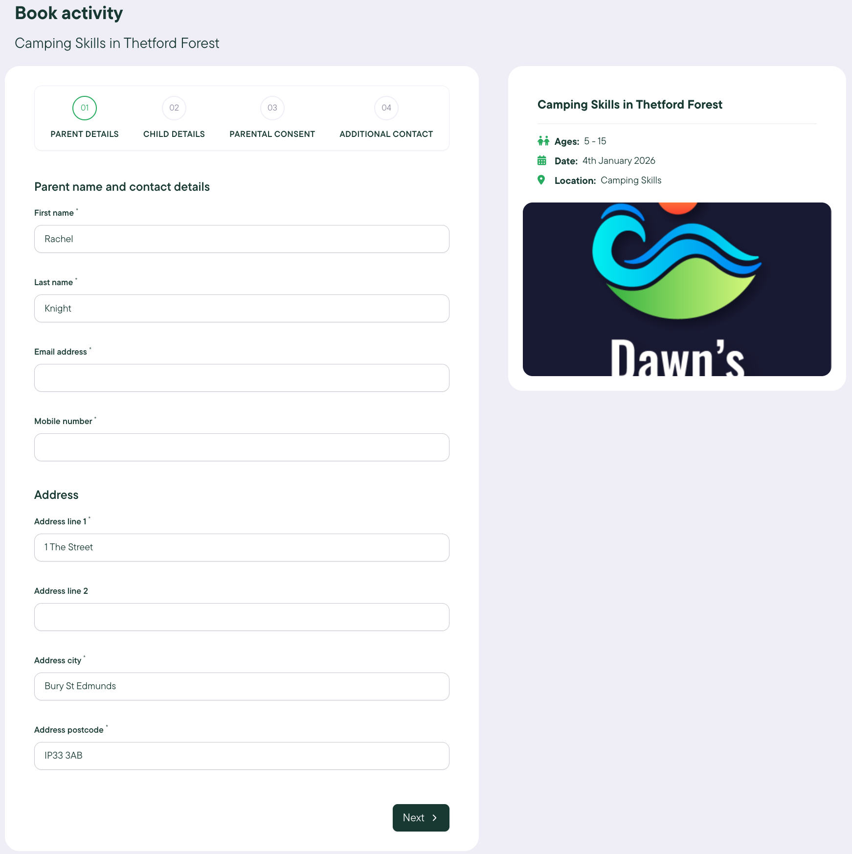 Once booked you will be able to log in and view the activity details at anytime before the activity where you can confirm the location and times, as well as see the provider contact details to be able to get in touch with them directly.