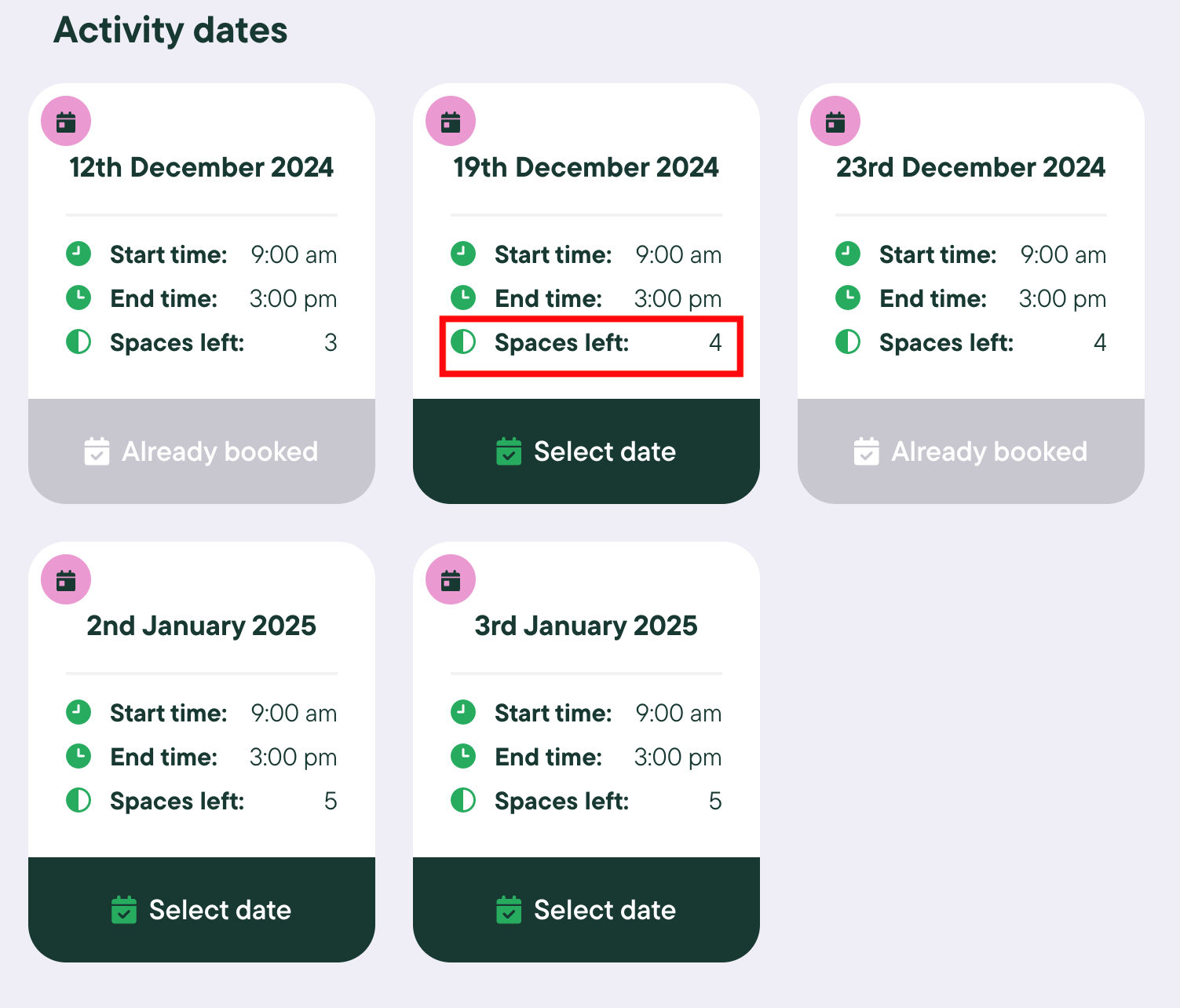 Choose an activity and click View activity, then choose the date you wish. Ensure that the activity has enough spaces for all of your children to be booked onto and select date.
